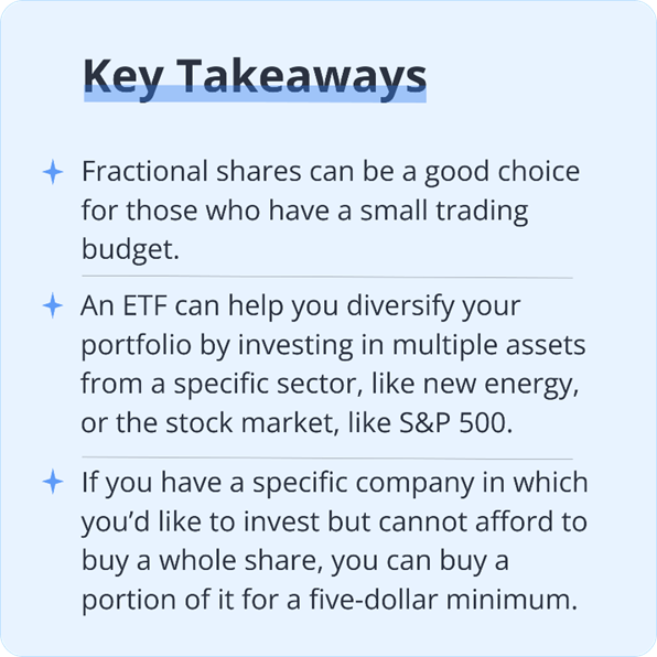 If you find ETFs are still too expensive, consider fractional shares instead.